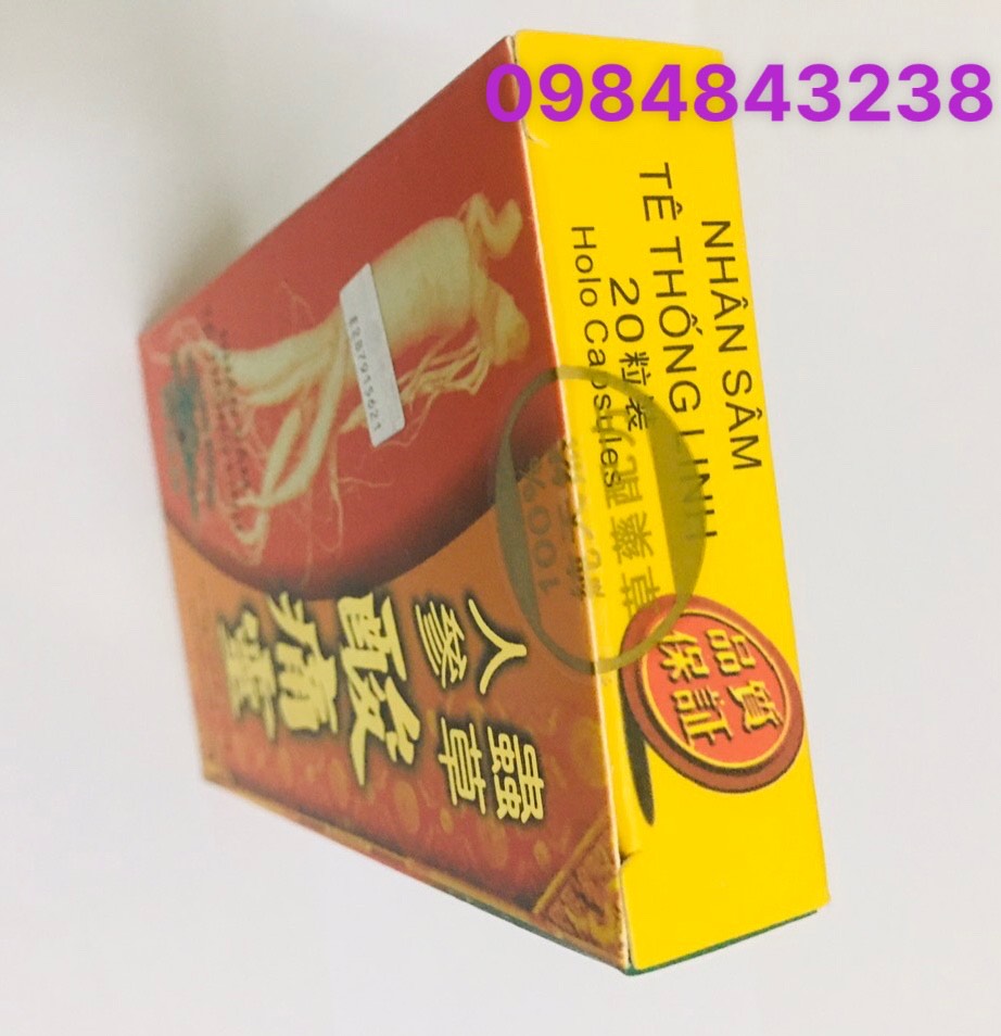 - Công dụng: Nhân Sâm Tê Thống Linh chuyên điều trị các bệnh lý liên quan đến xương khớp. Giúp thông huyết mạch, thông kinh lạc, mạnh gân cốt, trị chứng phong tê thấp, tê liệt bản thân, nhức mỏi tê bại tay chân, cứng khớp gối, đau cột sống, đau thắt lưng, tê bại do thoát vị đĩa đệm và thoái hóa khớp.